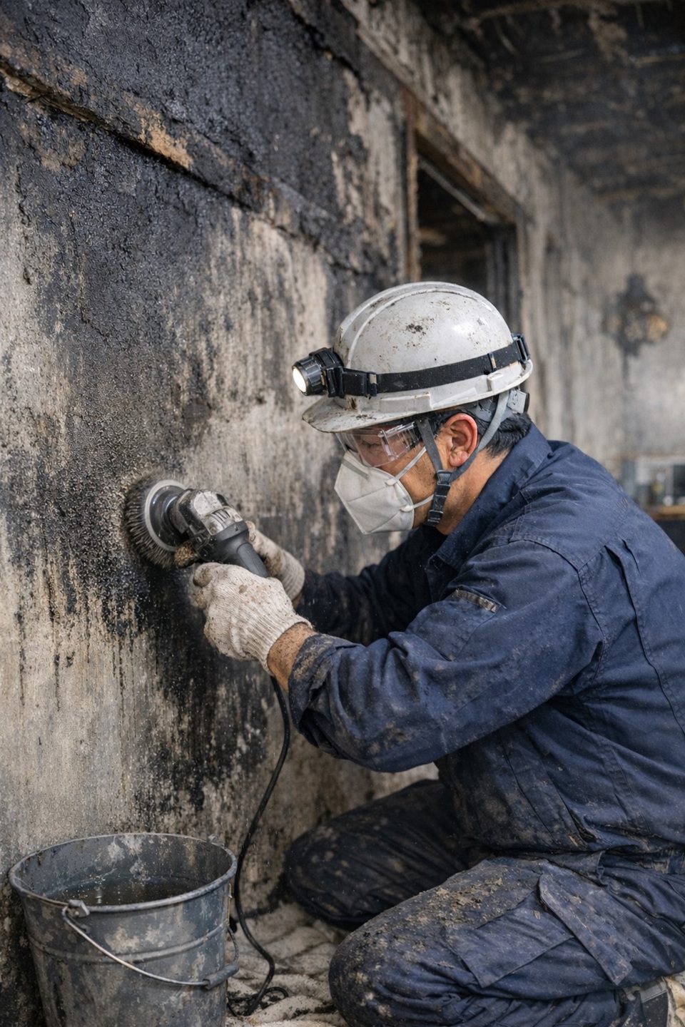 コンクリートや木部、鉄骨などの構造体に付着した煤は、表面を軽く拭いただけでは除去できません。